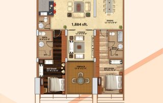 - 15th Floor Luxury Apartments: 930 sq ft, 1,307 sq ft, 1,664 sq ft, 1,874 sq ft (3-Office Spaces), 2,132 sq ft, 2,375 sq ft, 2,574 sq ft, 3,222 sq ft, 3532 sq ft.