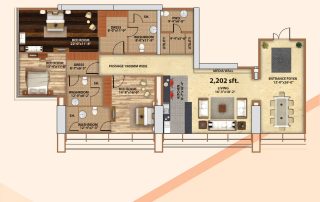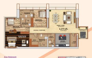 The apartments have been fully finished with a fine material and the quality of material which is used by the developers are of prime quality. The tiles and ceilings have already been fitted with AC ventilation.